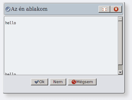 A képen az alább tárgyalandó stíluslappal készült javascript ablak képe látható firefox böngészőben. Természetesen a böngészőkben némi képpen eltérően jelenik meg. A megjelenést tovább lehet finomítani, ha a gombokat is magunk csináljuk. Én most ezt nem tettem meg.