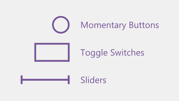 A rendszer 3 különböző kontrollert ismer fel, egy érintőgombot, egy nyomógombot és egy csúszkát.